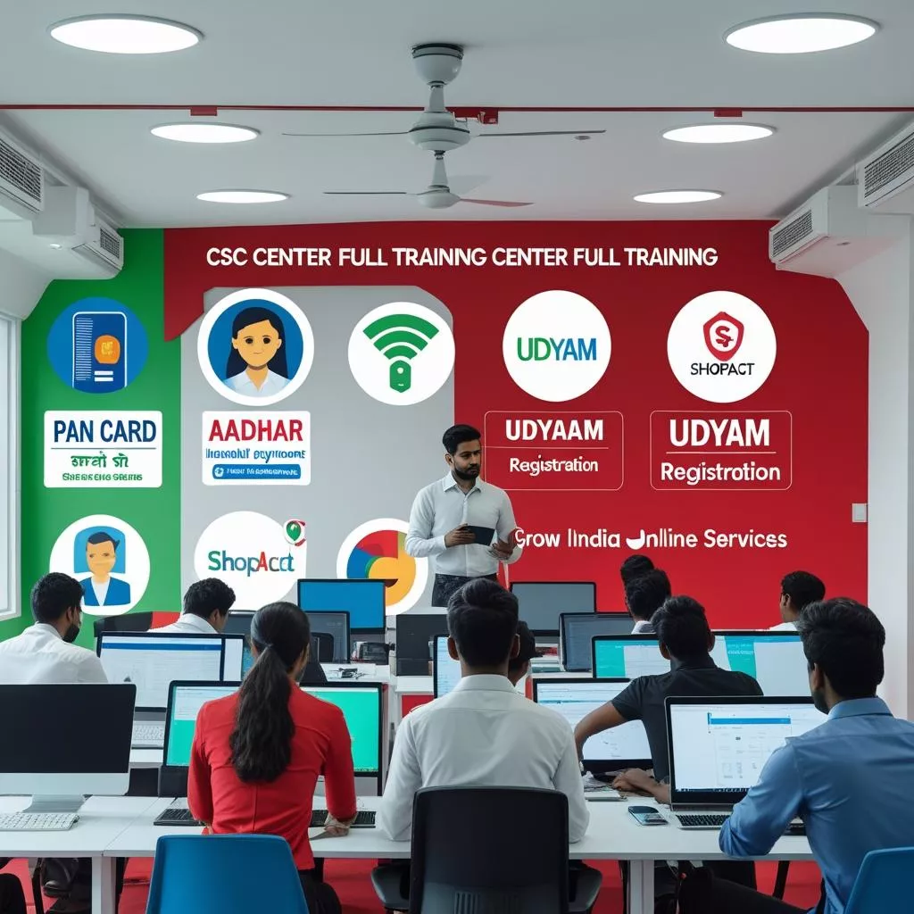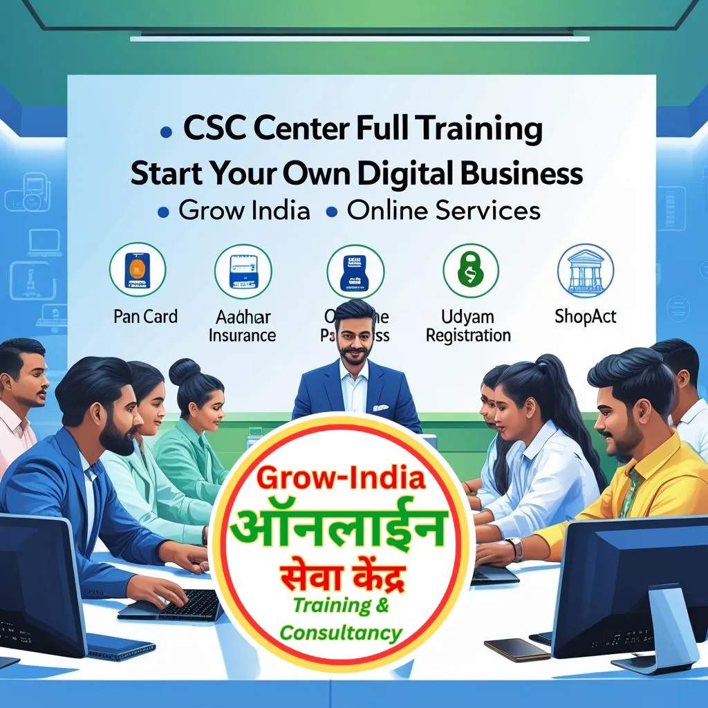 Grow India Online Services हे तुमच्या प्रगतीसाठी आणि स्वावलंबनासाठी कार्य करणारे एक विश्वासार्ह Setu Kendra & Online Service Training Center आहे. आमचे उद्दिष्ट साधे पण प्रभावी आहे – सामान्य युवक–युवतींना ऑनलाईन सेवा क्षेत्रात नोकरीपेक्षा व्यवसाय उभारण्याची संधी निर्माण करून देणे. आम्ही तुम्हाला CSC / Online Service Center सुरू करण्यासाठी लागणारी A-to-Z माहिती, Training, Document Process, Marketing Guidance आणि Complete Support पुरवतो. प्रत्येक विद्यार्थ्याला Live Practical Training देऊन, सर्व फॉर्म्स, सरकारी प्रक्रिया, डिजिटल सेवा आणि ऑनलाइन कामांची वास्तविक शिकवणी दिली जाते.