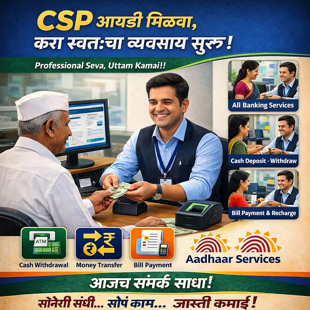 👉 CSP ID द्वारे Mini Bank सुरू करण्याची सुवर्णसंधी!🚀 CSP ID घेऊन Banking Business सुरू करायला तयार आहात.. योग्य Guidance हवंय? Mini Bank सुरू करून चांगले उत्पन्न मिळवू शकता.